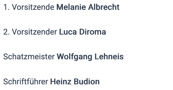 Unser Vorstand besteht satzungsgemäß aus vier Personen, diese sind am 19.10.2024 gewählt worden: